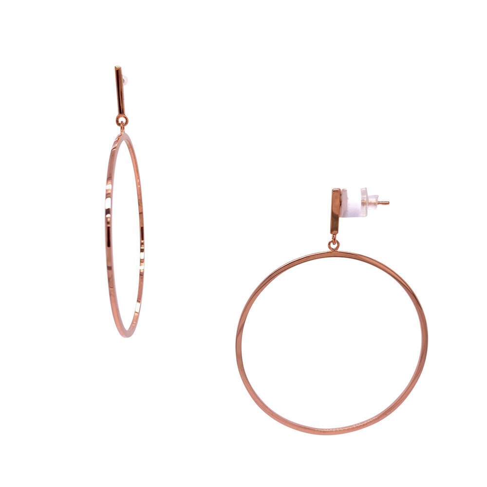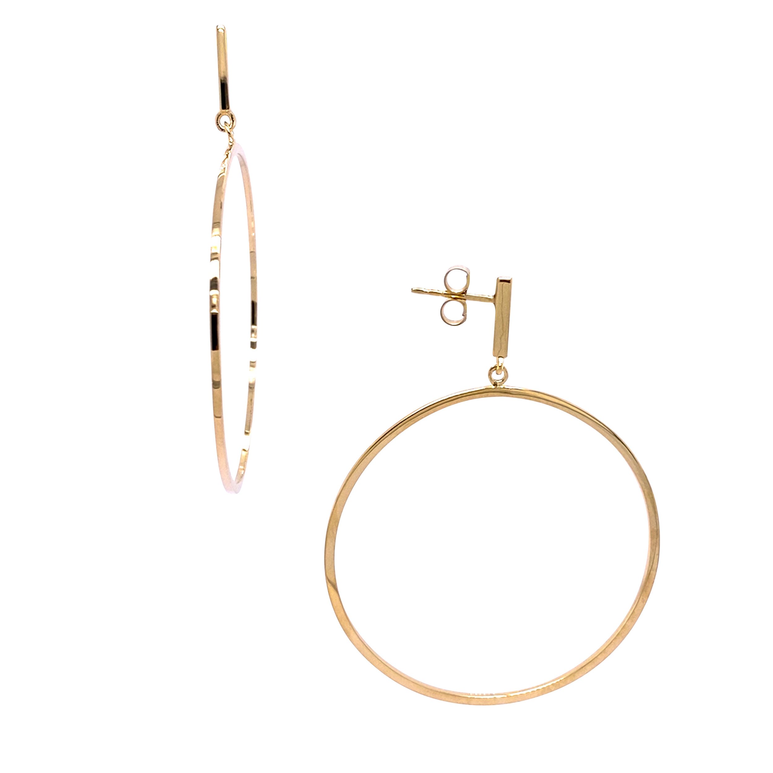 Drop hoops with post back. Available in silver, rose gold, and yellow gold.