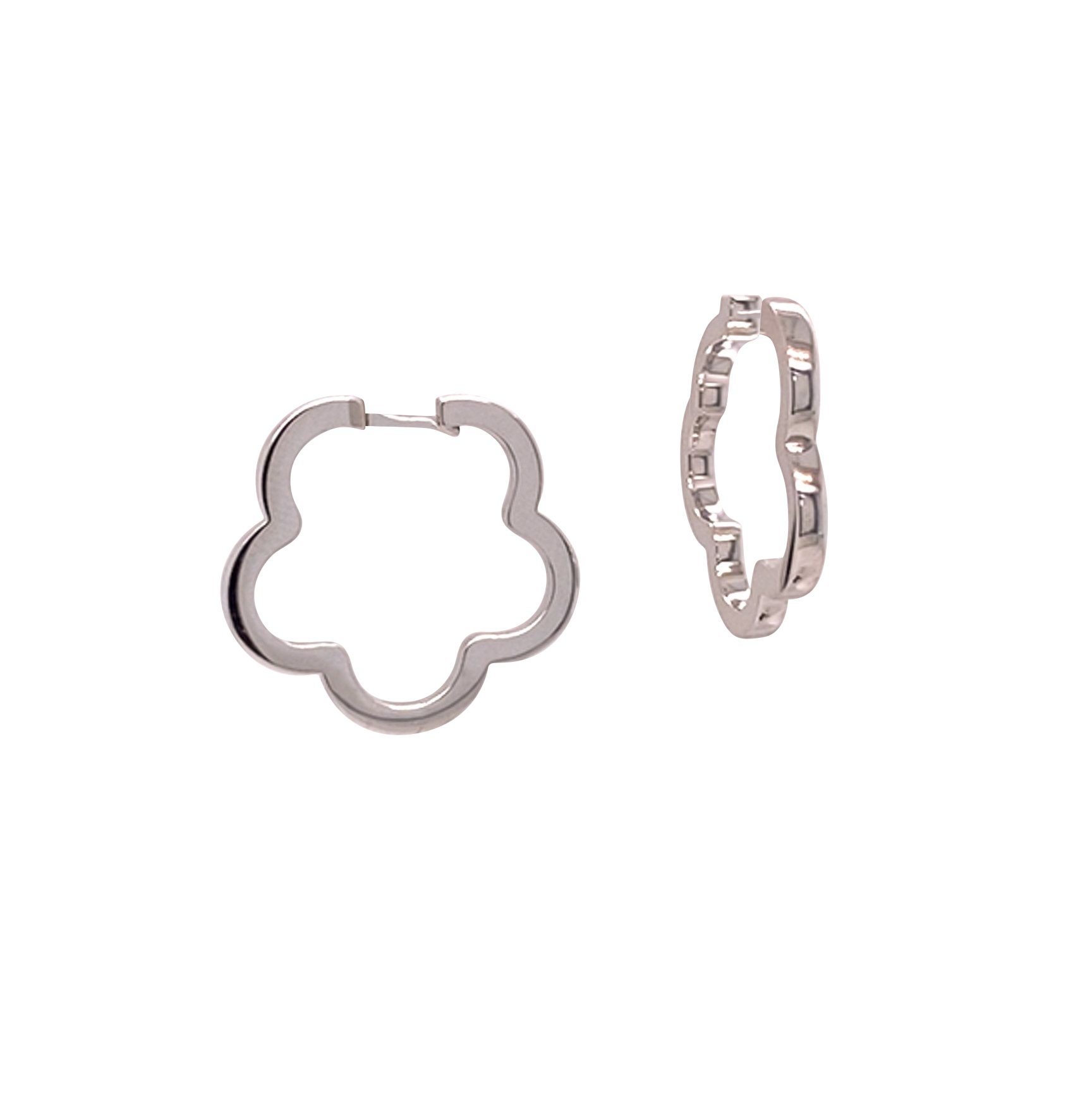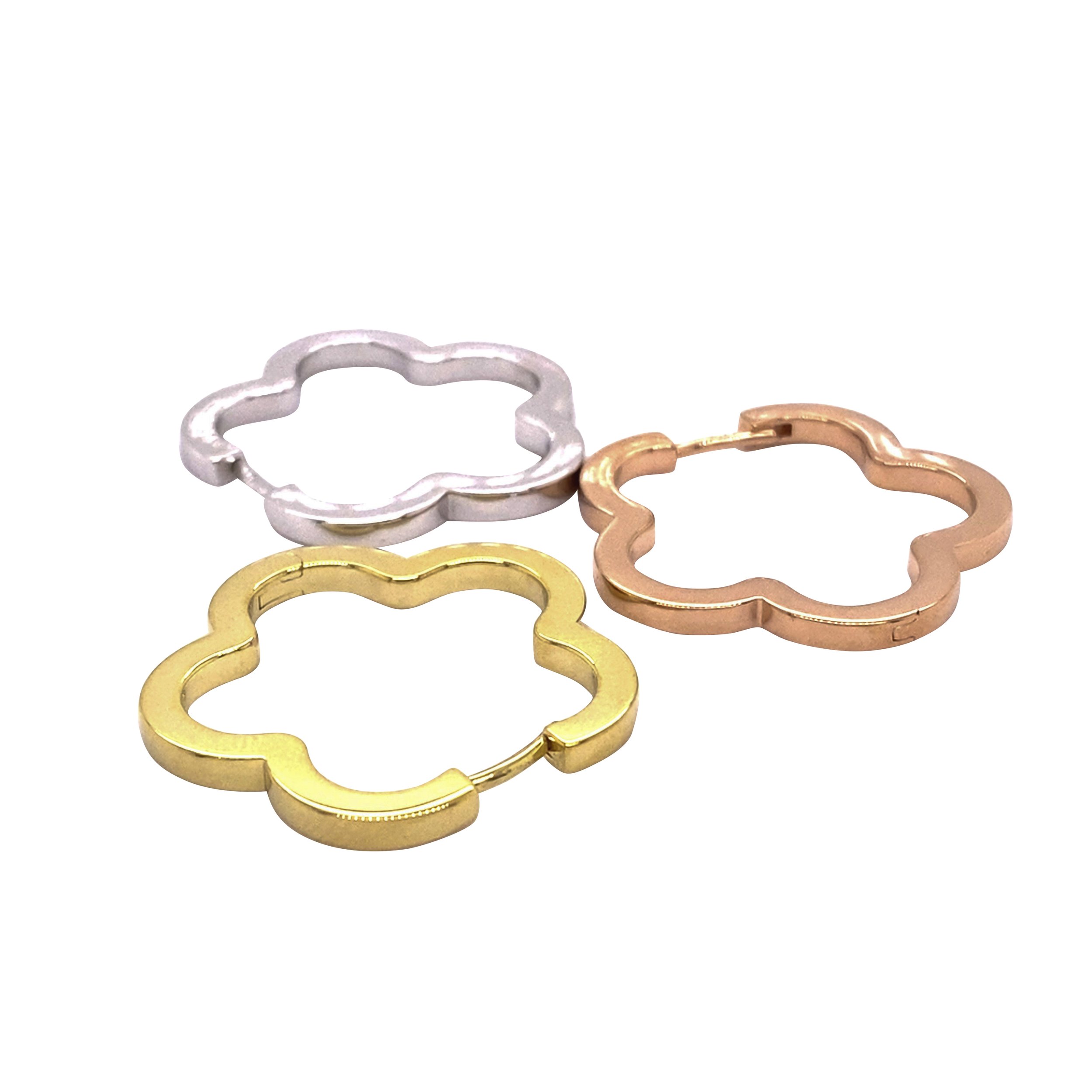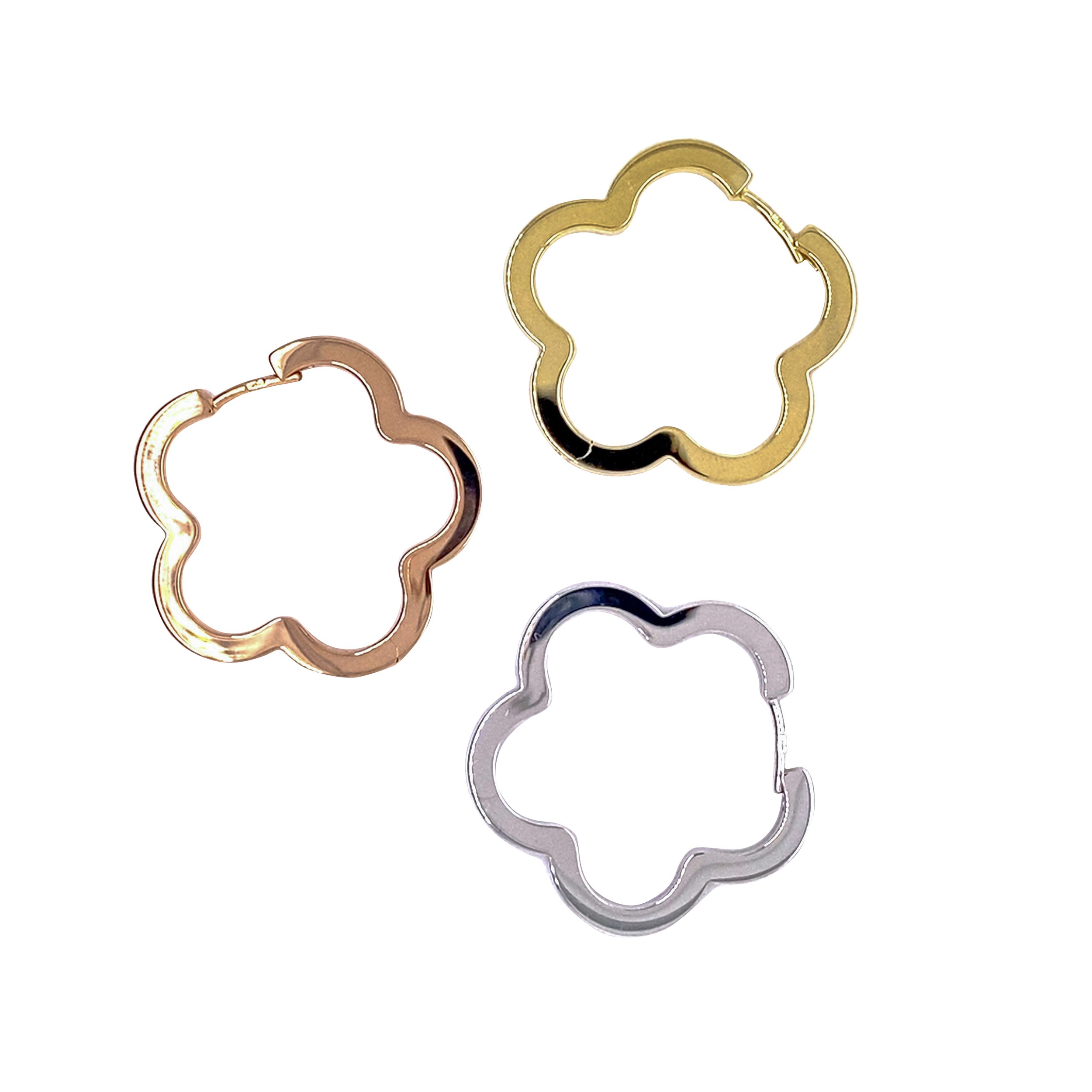 Whimsical flower-shaped hoops with hinged post closure.