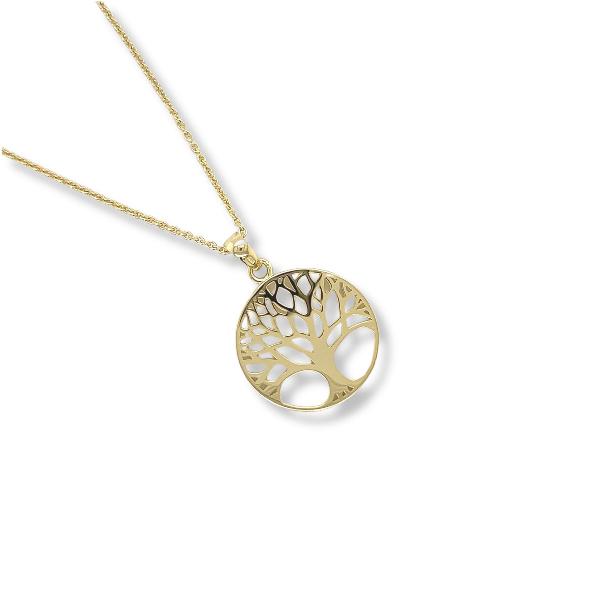 Gold-plated classic tree of life pendant on gold-plated chain with lobster clasp.