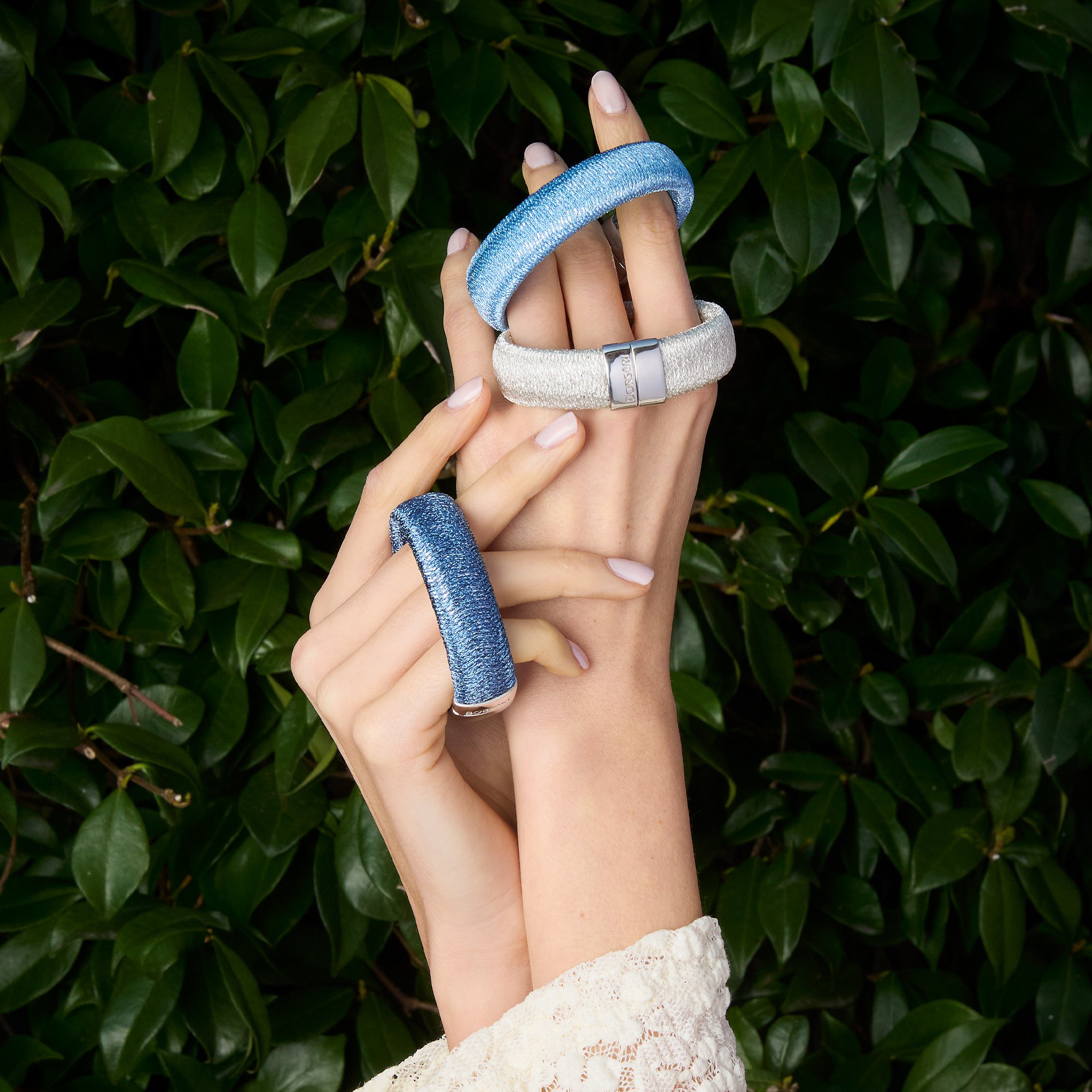 Materials: metal mesh, rhodium-plated sterling silver