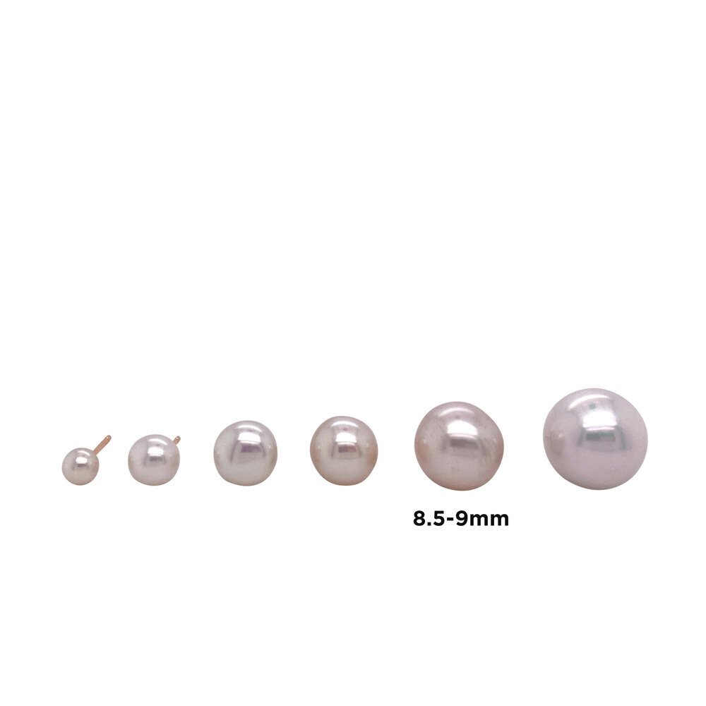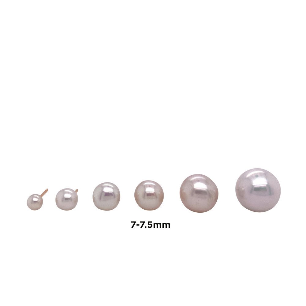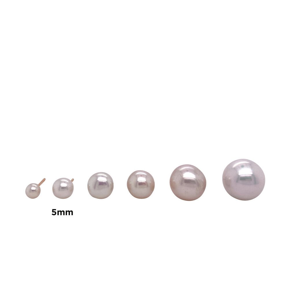 Freshwater round white pearl studs set in 14k yellow gold mounting.